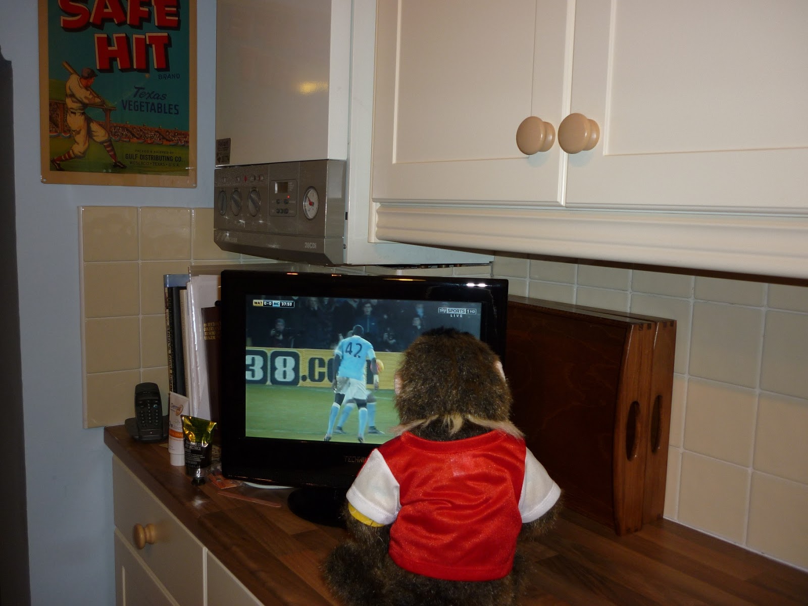 In the afternoon we all listened to the FA cup third round games on the radio. Our team got through but they gave us a few nasty moments. Sadly Hoppo seems to be hidden behind Tashi and Jack seems to be hidden behind Oregon, you can just see his sleeve. He is a bit camera shy but Hoppo isn't usually. Washington is only showing his hat and Yaya is hiding. It hard to take a picture of 33 excitable baboons and get them all in. I can't see Denis either.